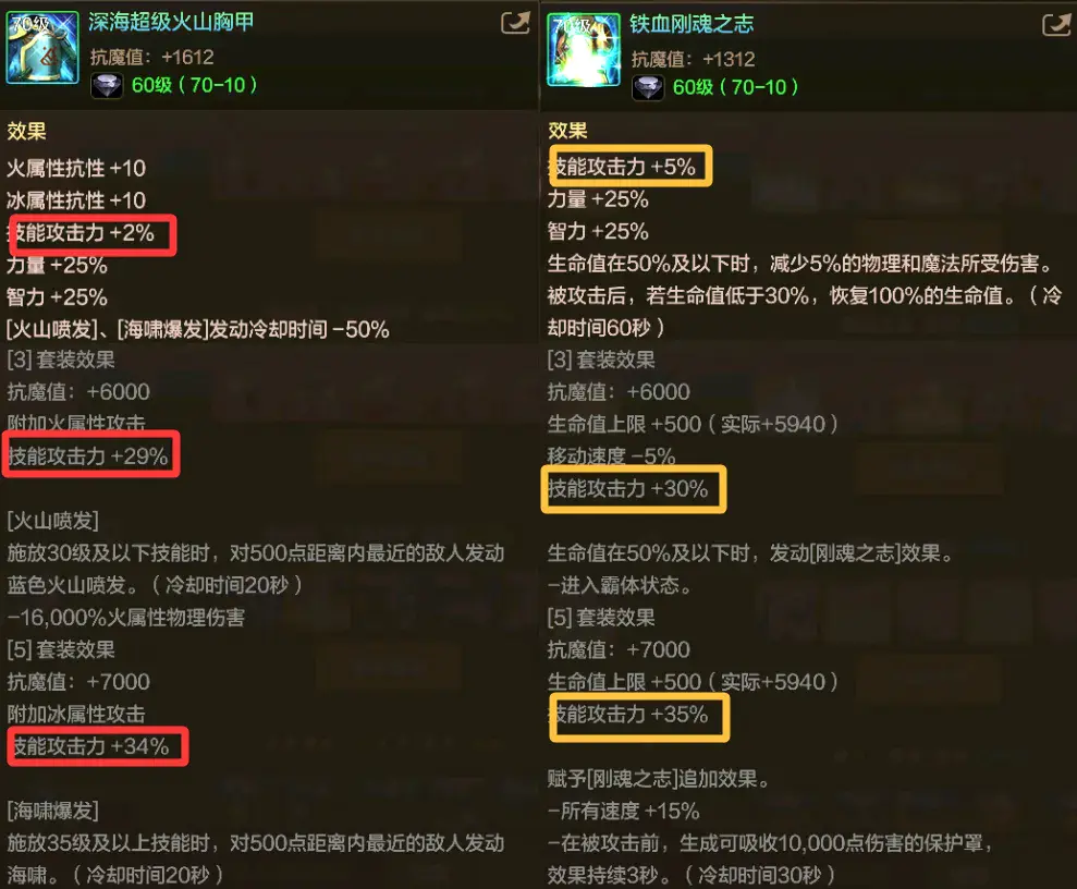 “轻甲3傻”的称号相信大家都有听说过,但是为什么“傻”?到底“傻”到什么程度呢?这就需要认真探讨了!首先是“大傻”深海火山套,它最大的短板就在于,基础技攻低人一等!都不用去和什么镇魂曲、真学套相提并论了,单单对比刚魂套,就少了足足5%技攻!
