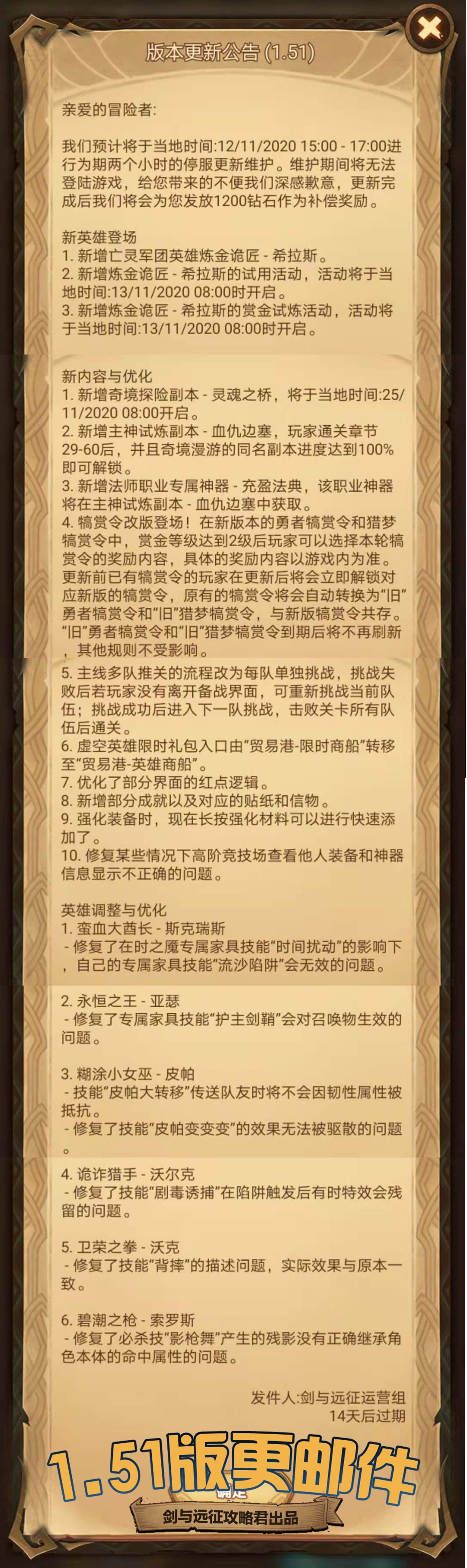 【攻略君】先遣服1.51版更邮件