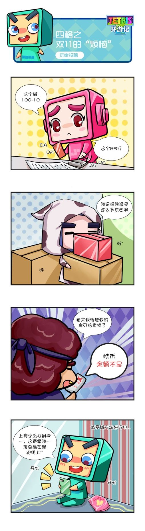 又是一年一度的11.11到啦,今天不但是光棍节,也是大家心目中买买买的好日子!方块联盟们也不例外~是什么让乐豆拿着计算器冥思苦想?又是什么让大金牙放话要卖掉金牙呢?让我们一起来看看,方块联盟们陷入了什么样的“烦恼”中吧!