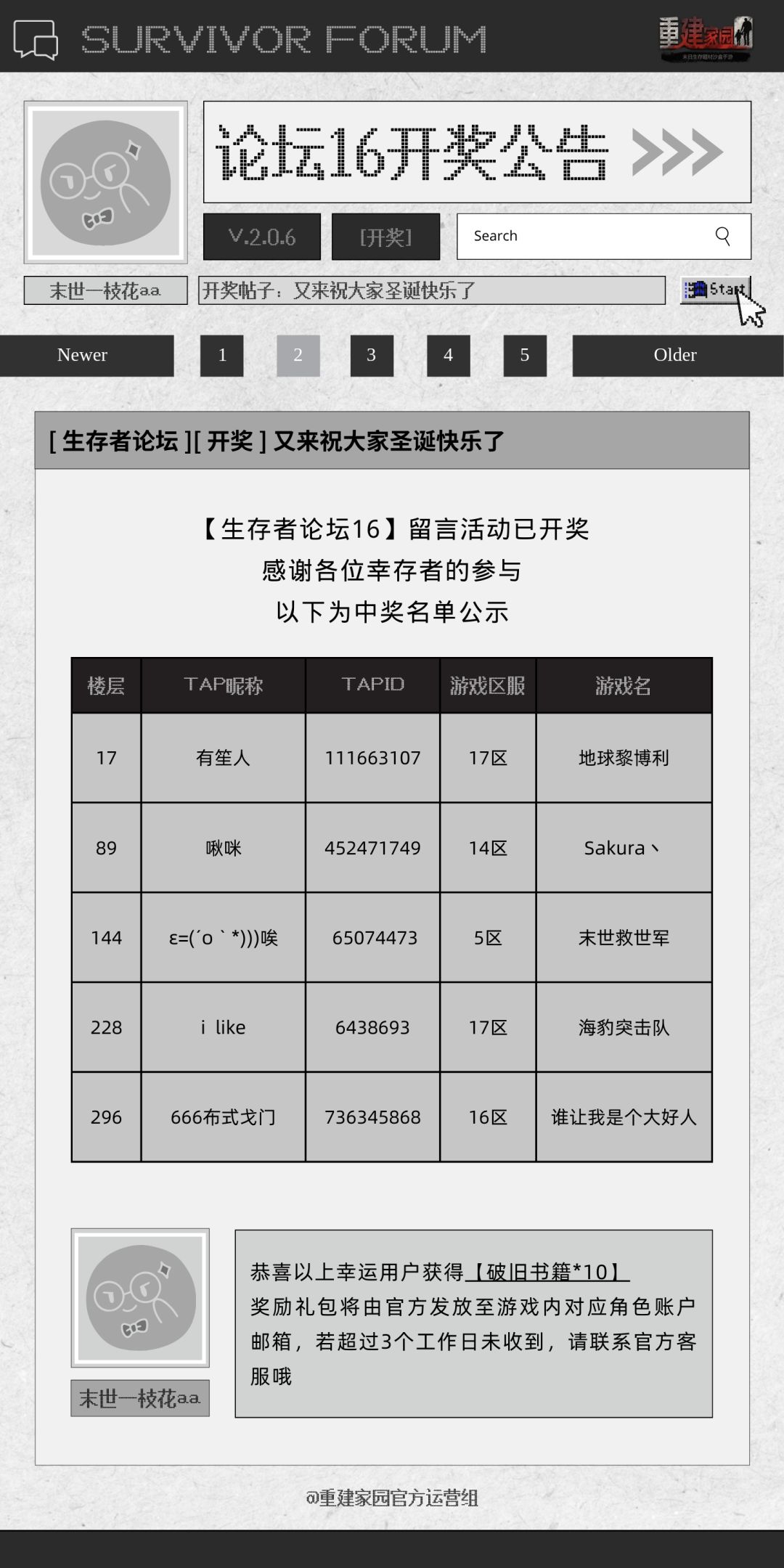 【开奖公告】生存者论坛 16 | 又来祝大家圣诞快乐了