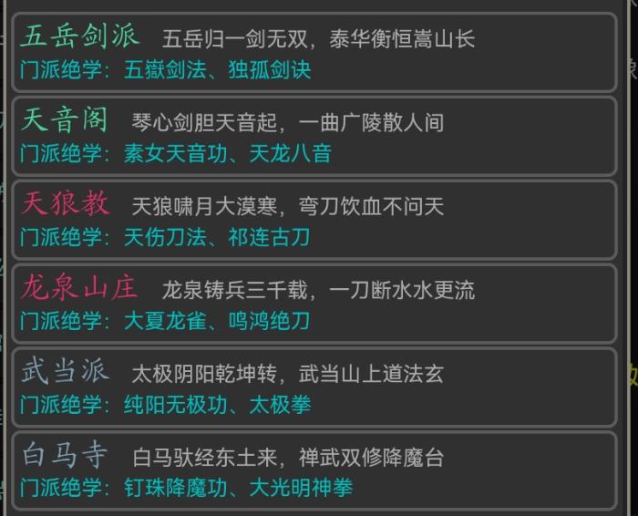本游戏门派共有六大门派