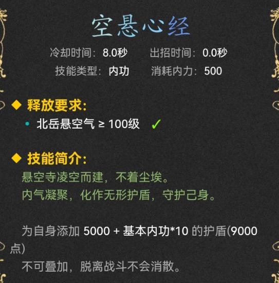 比如400基本内功8秒一次9000盾