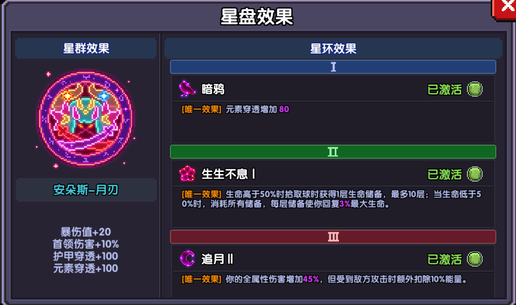 - 暴击率:100%,面板达到500暴击值触发斩厄眼