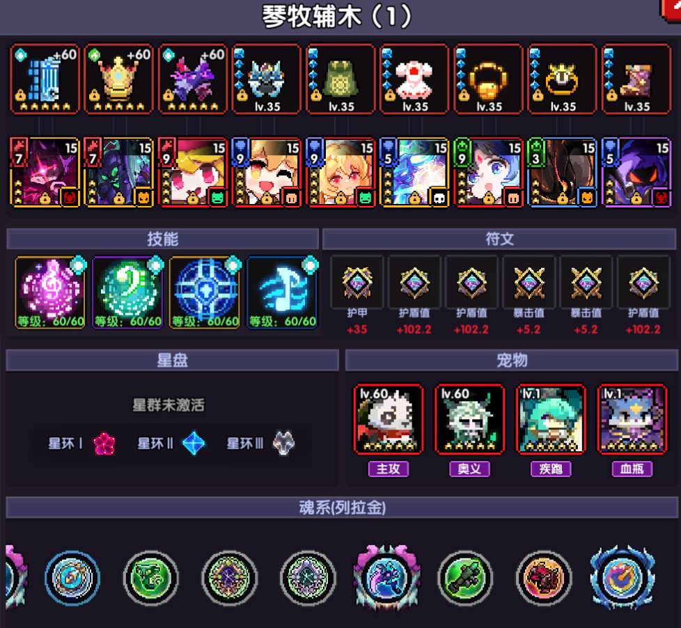 优先凑齐二阶星海外装吃俩级技能。饰品位主属性元穿或爆伤不用过于纠结,挑选副属性好的带就好了。