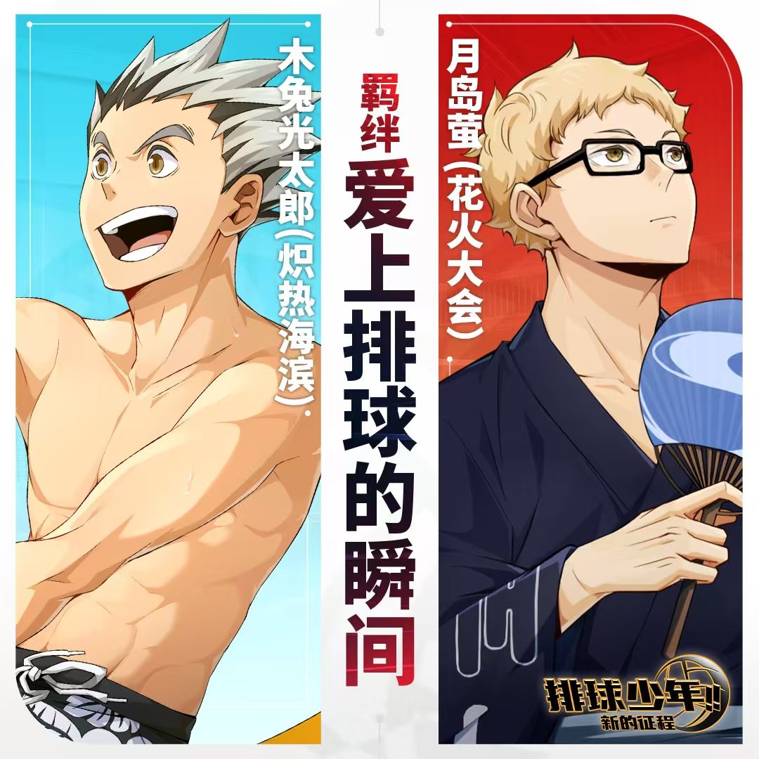 解锁羁绊后,木兔光太郎(炽热海滨)的【强攻】属性增加,月岛萤(花火大会)的【快攻】属性增加。