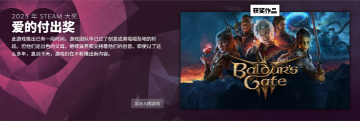 2025年Steam大奖获奖公布!11款游戏斩获不同类型大奖!