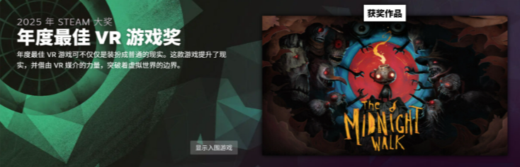 入围游戏:《F1® 25》《反恐精英VR》《午夜漫步》《勒芒终极版》《Emissary Zero》