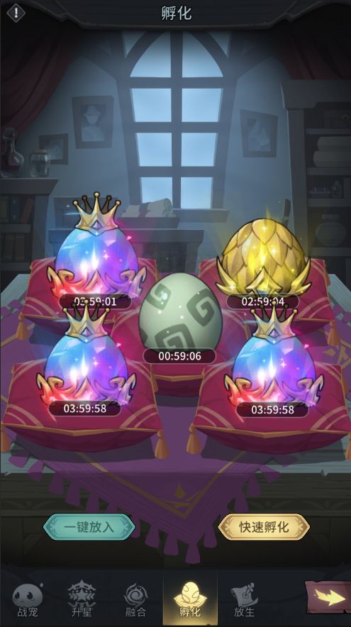 2.获得的战宠默认为战宠卵,需要通过孵化获得完整的战宠,不同品质的战宠卵需要的孵化时间不同