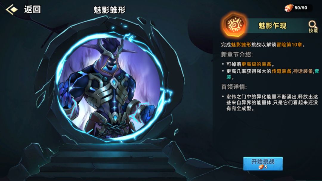 挑战成功解锁第10章关卡:可掉落更高级的装备,更高几率获得强大的传奇装备、神话装备、套装。