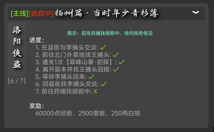 完成支线任务-药铺求助