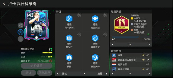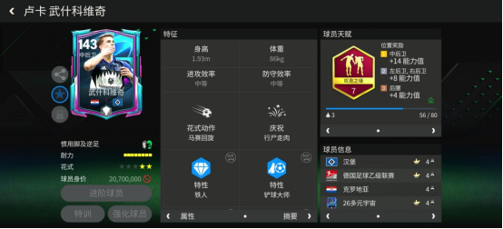 铁人、铲球大师、传中大师、聚光灯、解围大师、弧线传球、铁肺、大力头球