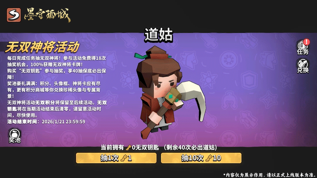 新一期「无双神将」的活动时间为