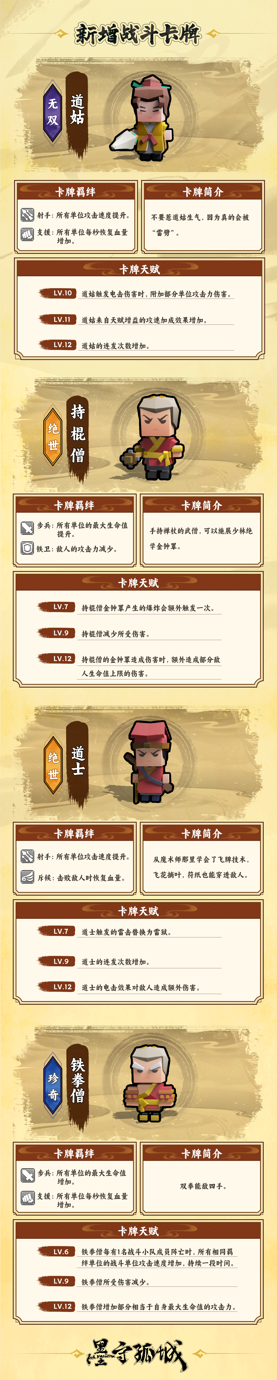 本期预告为大家介绍《墨守孤城》1.2.0版本中新增的4张战斗卡牌与12个新增益,即刻下滑查看吧!
