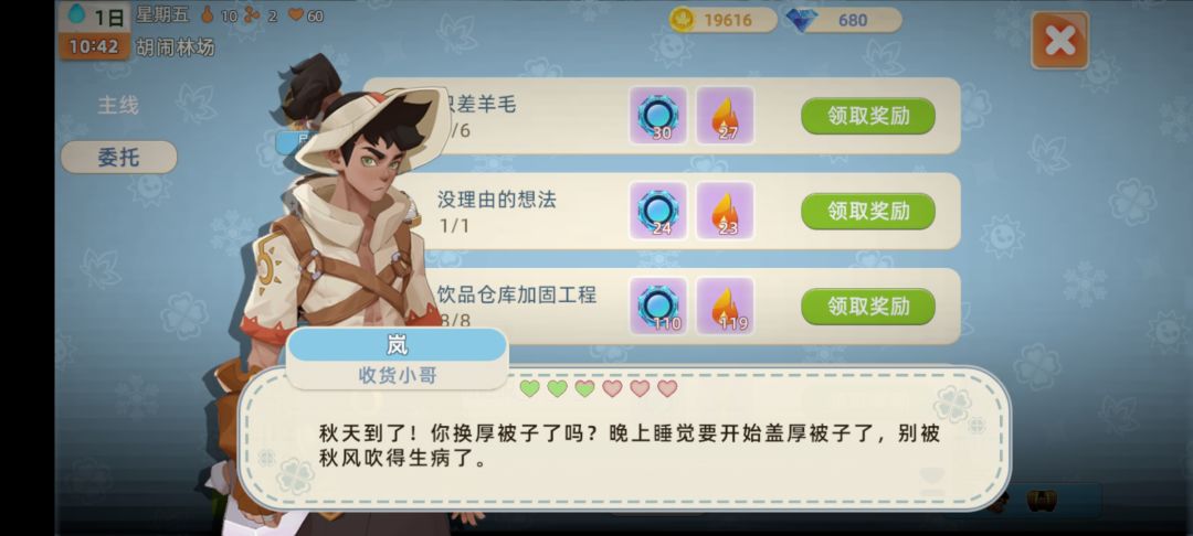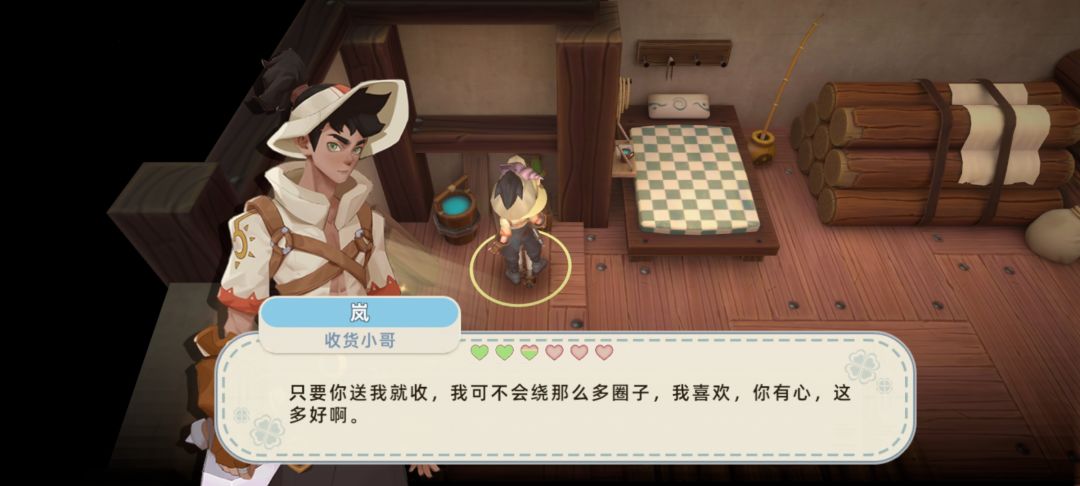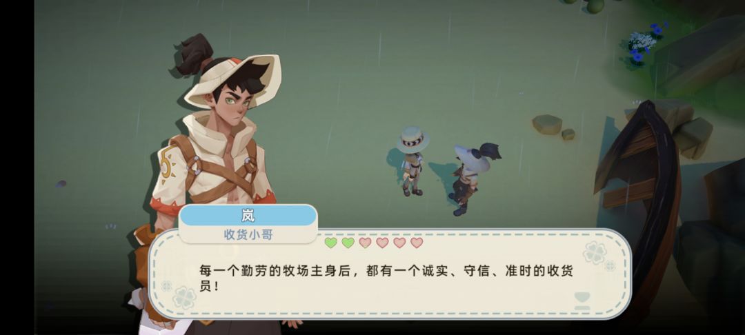 目前最喜欢的NPC就是收货小子岚啦,打算追他,毕竟“每一个勤劳的牧场主身后,都有一个诚实、守信、准时的收货员”!