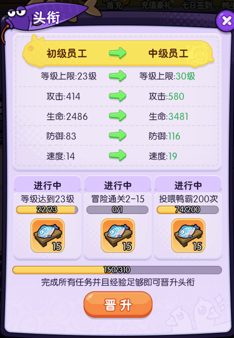 提升头衔(带来全局百分比加成)。