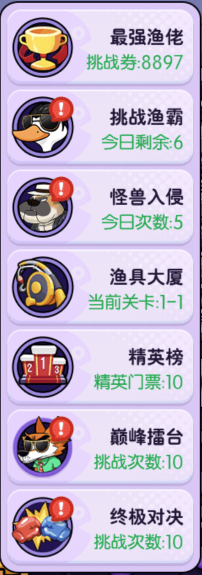 6.打几次“渔霸对决”清空次数。利用碎片时间完成高奖励玩法。