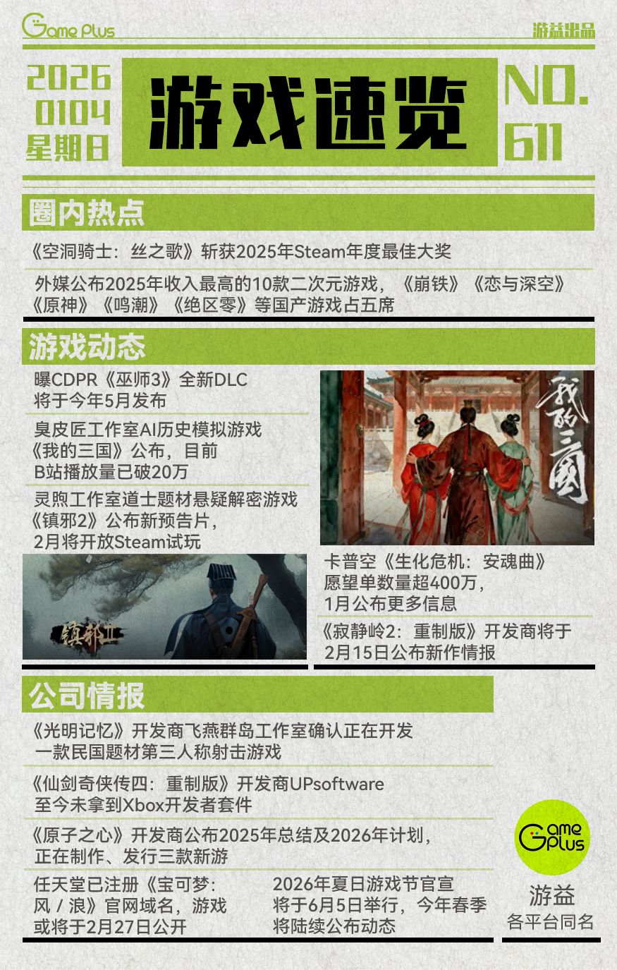 游戏行业值得关注的信息-01.04