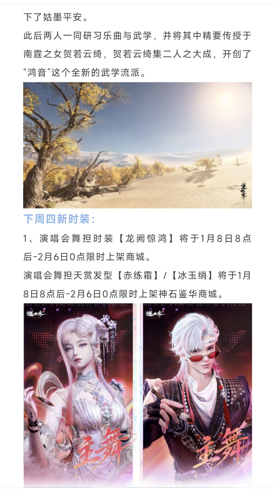 逆水寒手游下周288块新时装,演唱会主舞时装,明天必得500代金券,新职业鸿音背景故事!