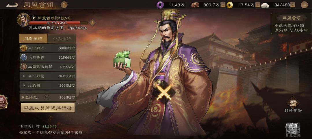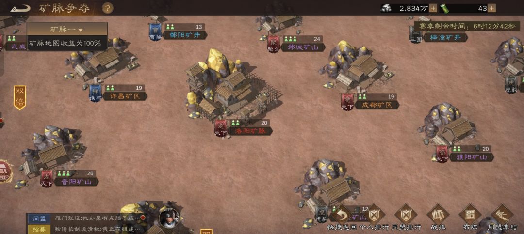 由于我等级低,而在世界频道里前面的盟都有一定的战力和等级要求,所以进不去,就申请了一个排名十五名左右的,没有等级要求的盟加入了。入盟以后每天所有捐献都拉满...问鼎也全参加,但是过了一个多星期,也发现不太对劲...盟主已经三四天不上线了,盟里也没有其他人说话,问鼎的时候也就偶尔几个人上来打打...感觉要凉....于是在下一期问鼎结束后,还是下决心跑路了。