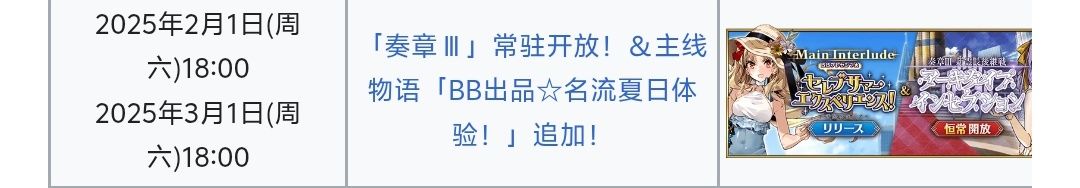 2.1日夏活進常駐 沒來得及打奏三的御主 打完夏活就可以打奏三了