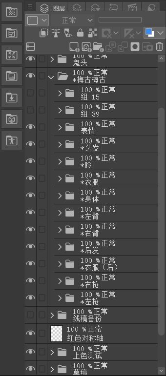 因为这是一个Live2D模型,所以图层需要细分。目前这张图其实已经有300多个图层了(鬼龙那个有600+)。