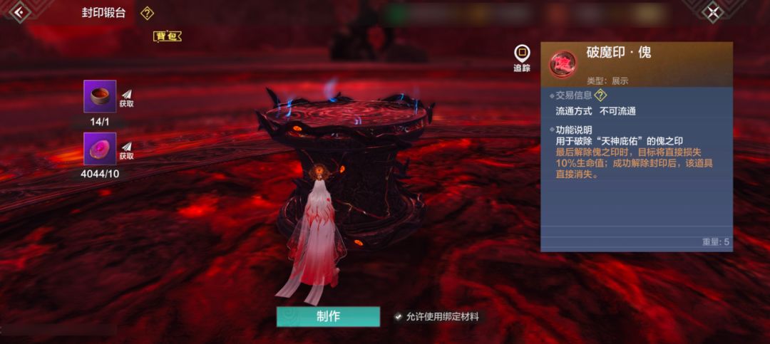 ○ 封印锻台:合成破魔印