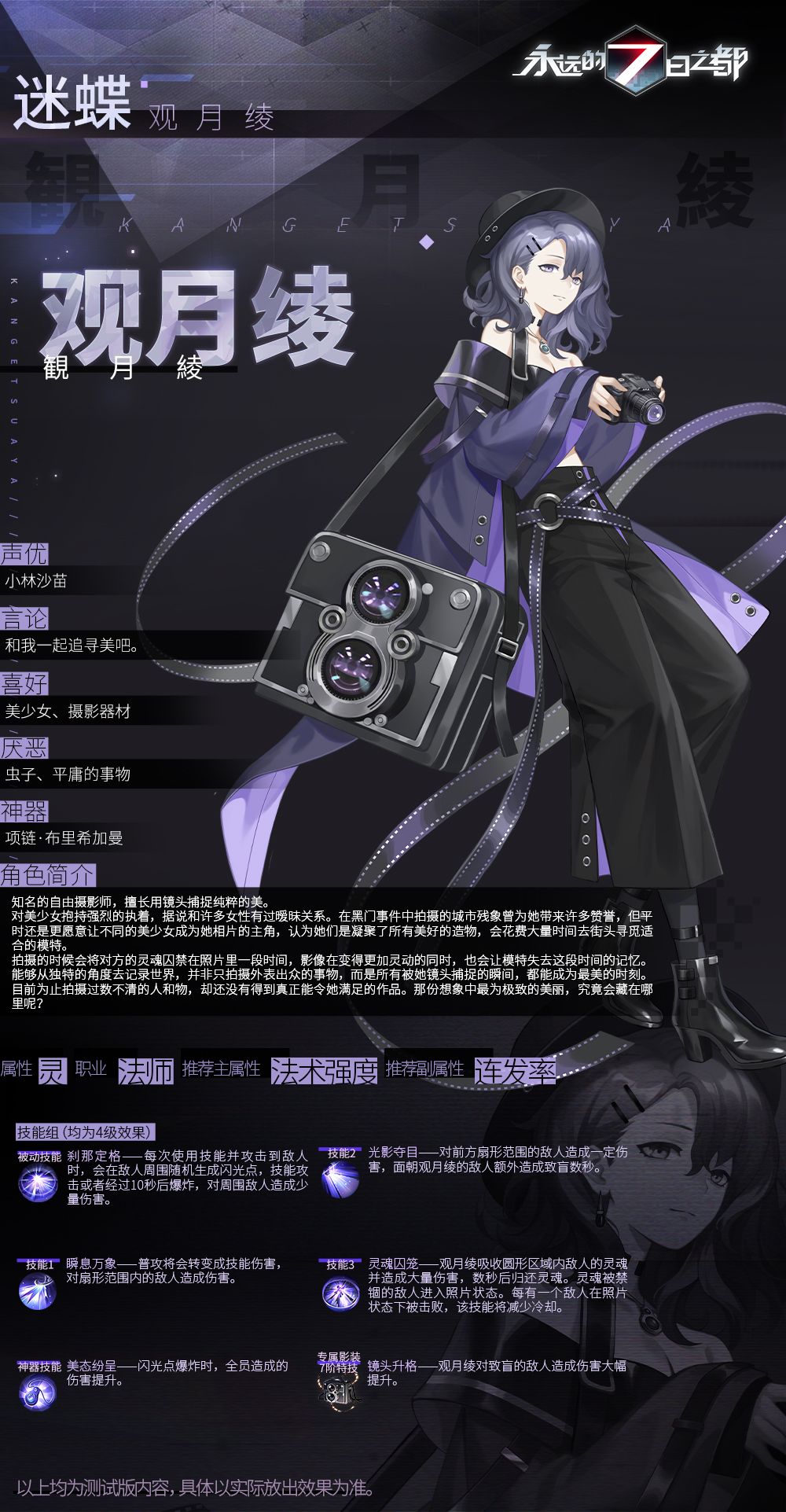 拍摄的时候会将对方的灵魂囚禁在照片里一段时间,影像在变得更加灵动的同时,也会让模特失去这段时间的记忆。