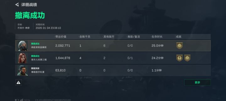 张姐撤出去了,呼,滑索,上去,去飞鼠,10秒撤离,肥肥得吃。