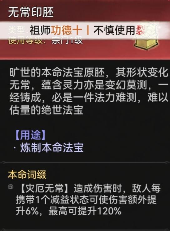副法宝的话推荐蓄力值为五百的水系法宝如三阶木、三阶竹,不过up主尝试过三阶竹的效果,表现比较差劲,还是比较推荐使用三阶木。