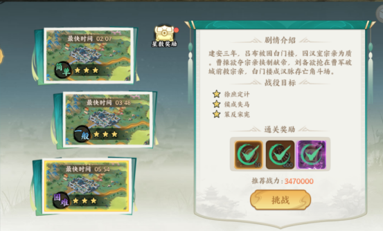 关卡内存在主线与支线。完成支线可以降低通关难度,但实力碾压的情况下直奔主线反而更能节约时间。另外有的关卡需要先做支线才能做主线,如玉玺之战就需要先做支线找到玉玺。