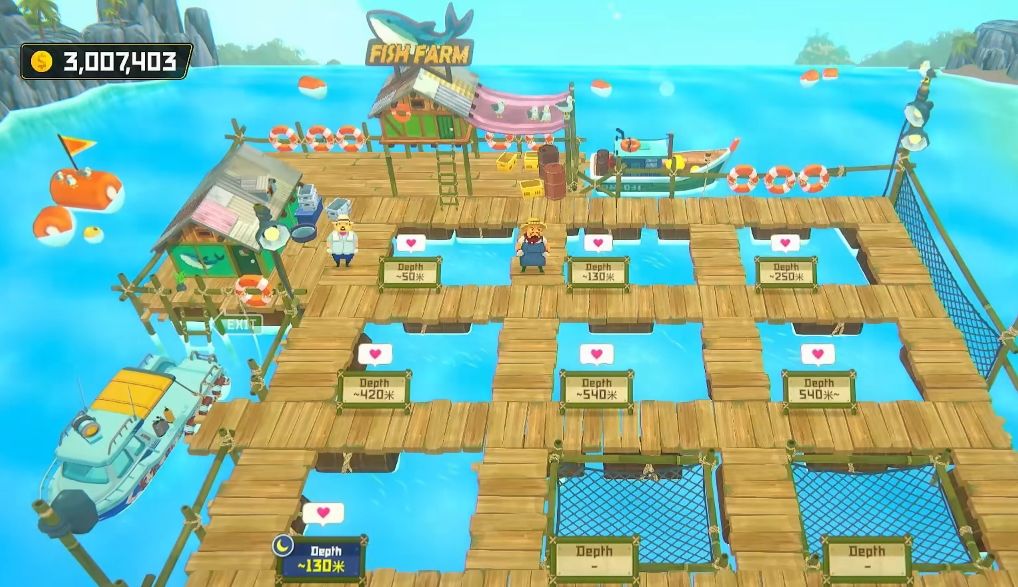随着主线剧情任务的推进,我们会逐步解锁更深的区域,通过奥托的商城,我们可以使用金币进行对应深度池塘的解锁以及其容量的升级