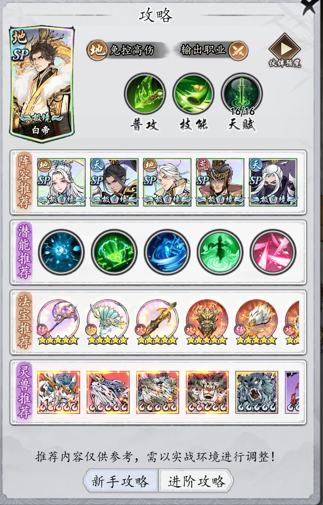 - 推荐阵容: 白帝(免控高伤)+洛尘(单体高伤)+ 秦戈(群伤反击)+ 叶天帝(叠怒高伤)+ 云曦(群疗加攻)+ 石昊(多伤收割)