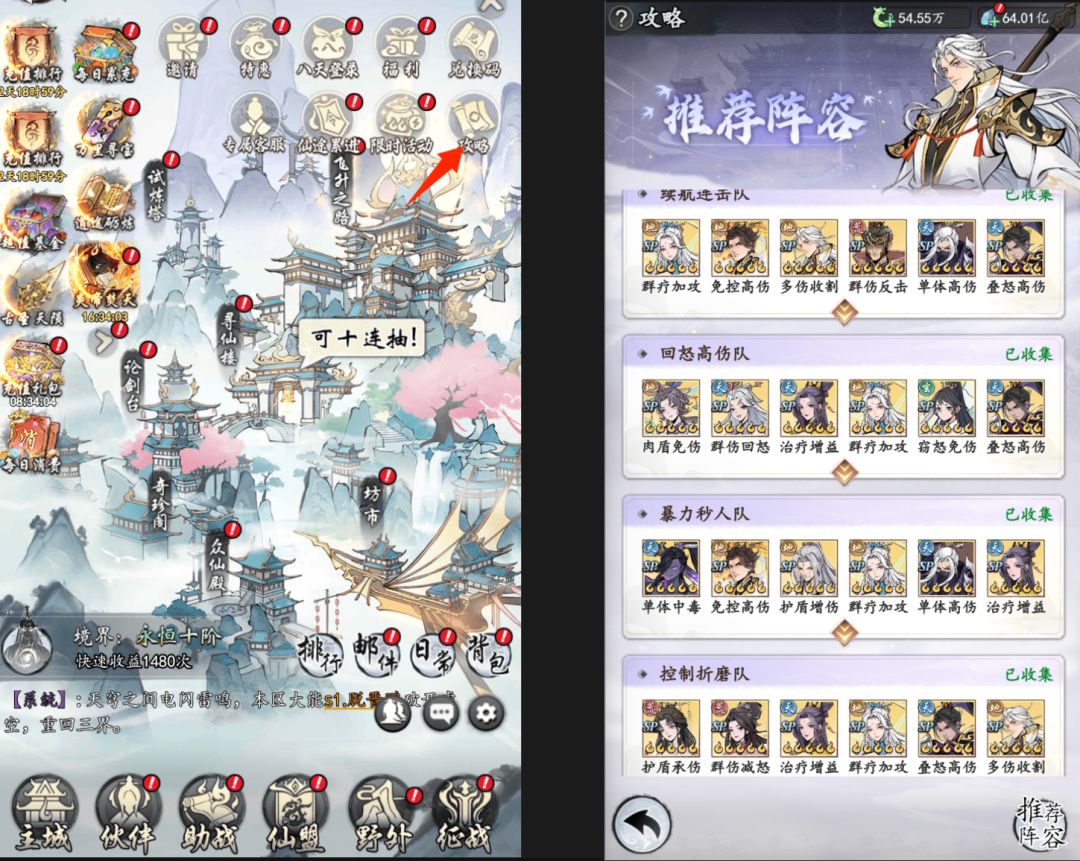 - 资源不足时:先激活低门槛阵势(比三界修行),用 S 级伙伴过渡,后期再换 SS 级,别硬凑高品质阵容。
