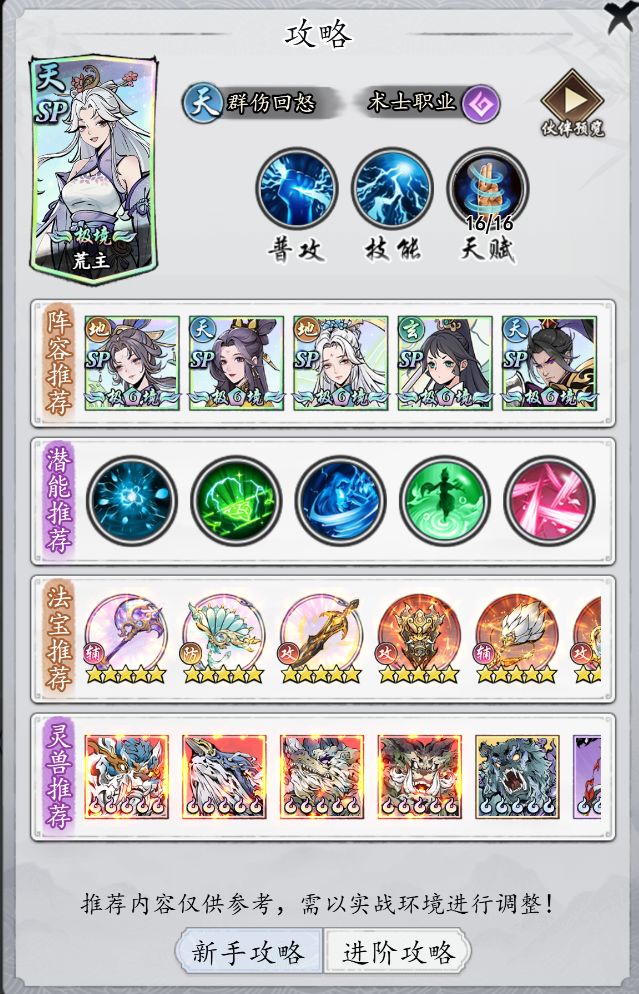 - 推荐阵容:青元子(肉盾免伤)+ 荒主(群伤回怒)+ 姬紫月(治疗增益)+ 云曦(群疗加攻)+ 方清雪(窃怒免伤)+ 叶天帝(叠怒高伤)