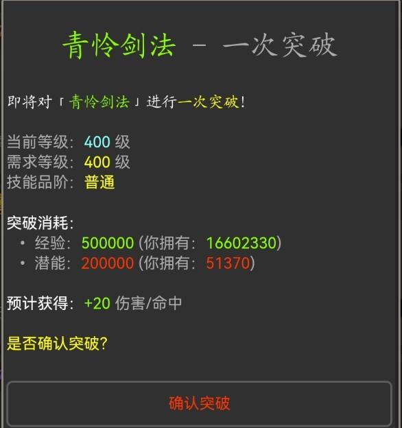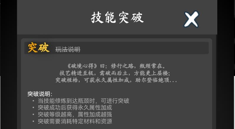 需要突破下一境界才能提高技能等级