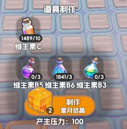 蜜月结晶产生100点压力,但是全部算下来(扣除VC)一个蜜月结晶实际上一个压力是315点,比一个多巴胺还多,元旦双倍生产期间把其他机子停了就猛搓支线的压力物品。一个降压希子也救不了的压力产生。