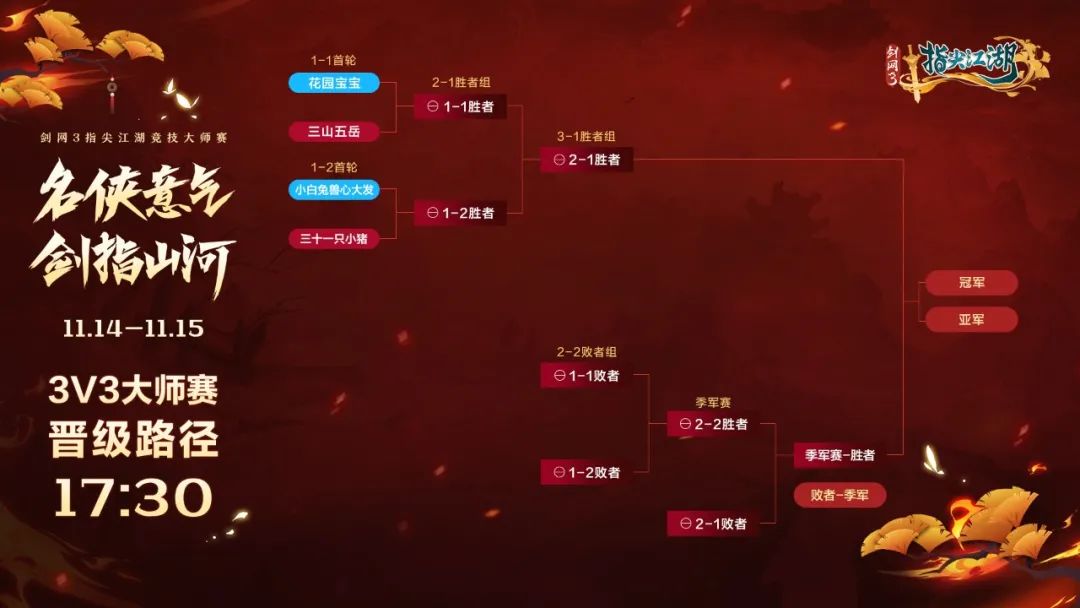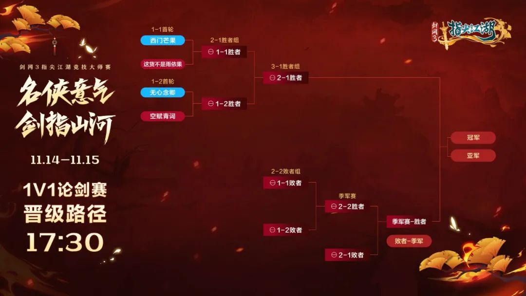 话不多说,让我们先睹线下决赛的赛程安排吧!本次决赛将采用双败制晋级路径。最终论剑赛及大师赛的决赛将在11月15日正式打响。