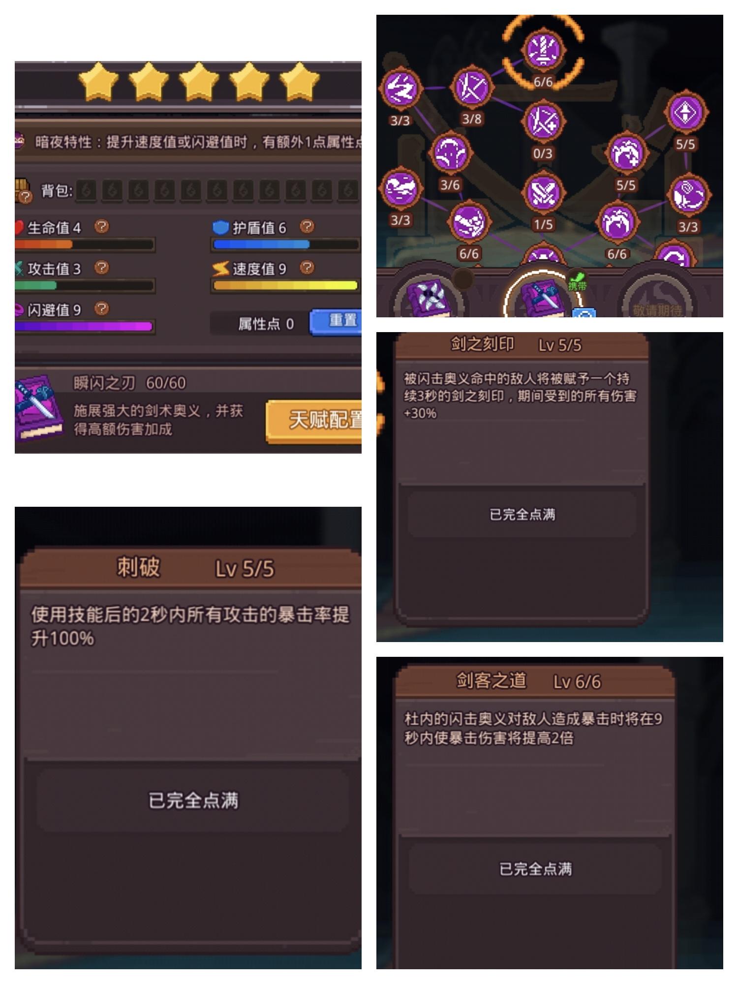 闪避点满,前期闪击最少命中一个怪物,续上剑客之道的buff,中的越多越好,提高清怪速度。