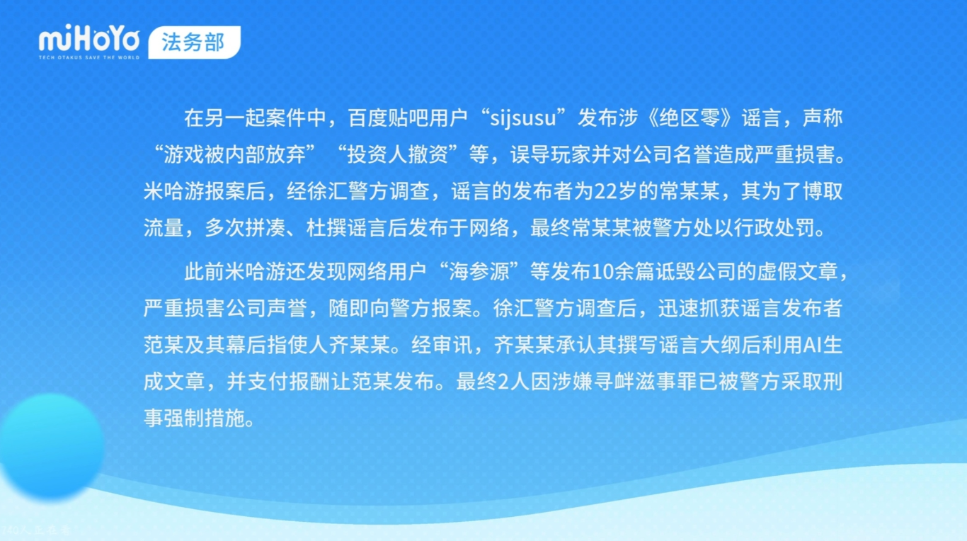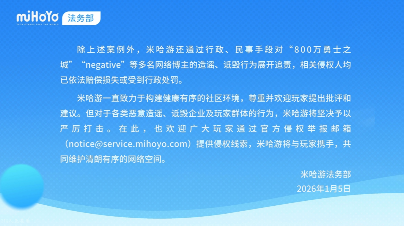 重拳追责!米哈游维权造谣博主,多名侵权人遭刑拘或行政处罚