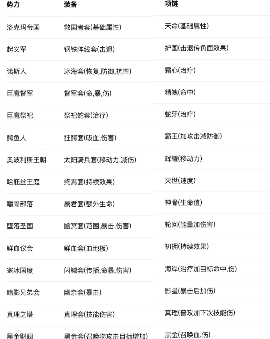势力装备,项链效果