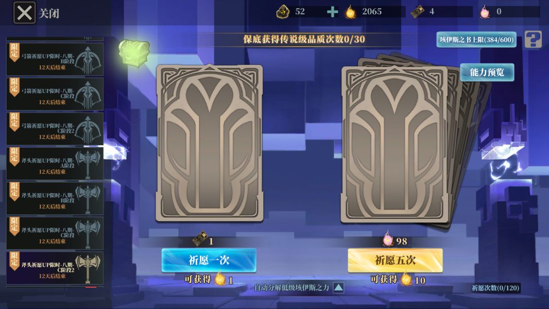 · 每个职业祈愿的抽取次数上限为120次,连续29次未获得传说级垓伊斯之力时,第30次必得传说级垓伊斯之力;