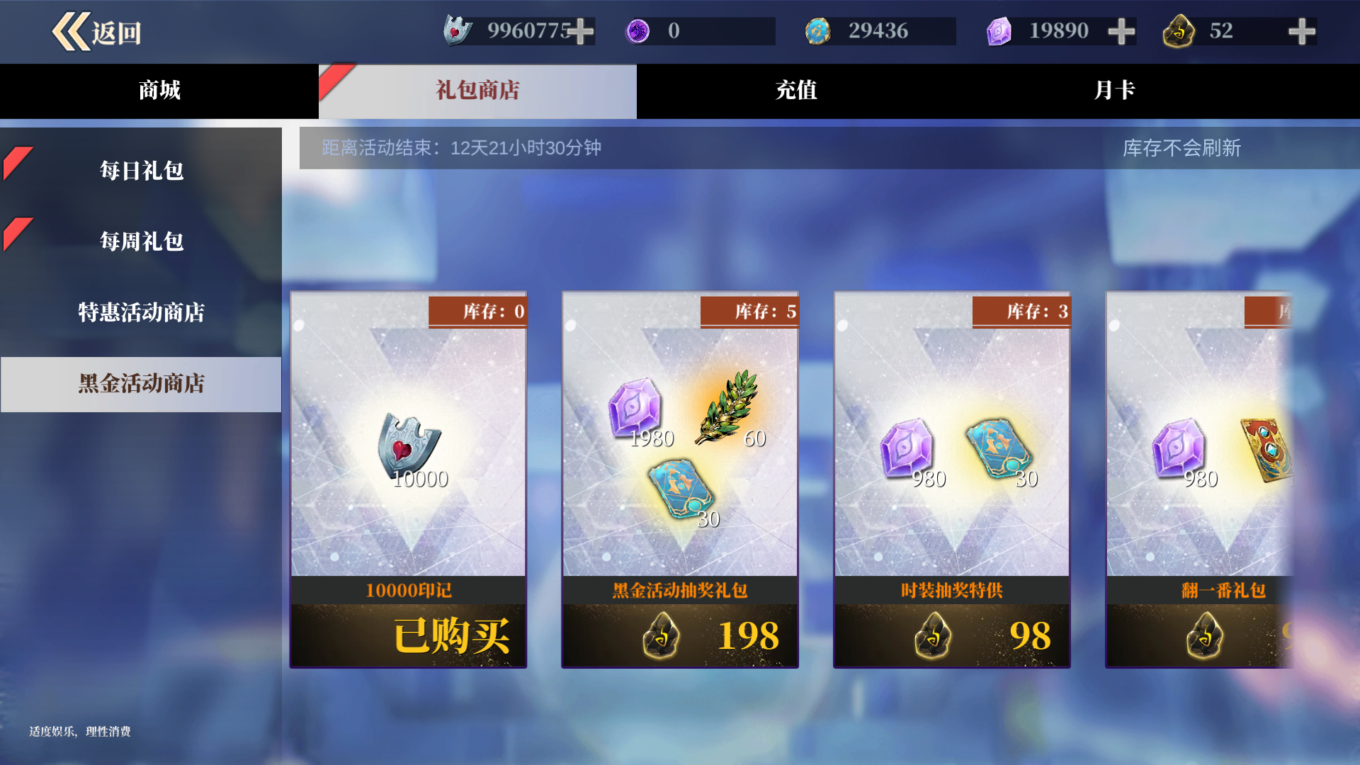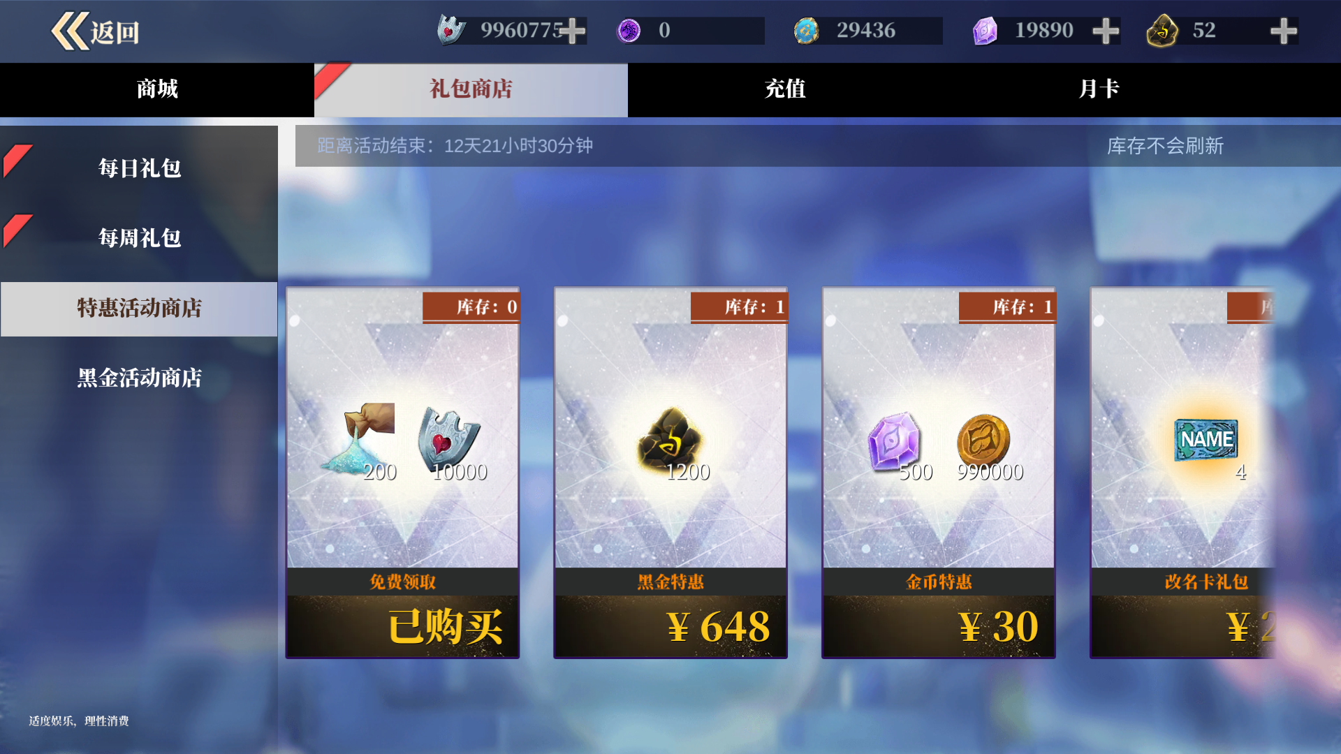 - 购买特惠自选祈愿助力礼包并完成任务,可领取黑金*270+职业祈愿开启凭证自选等