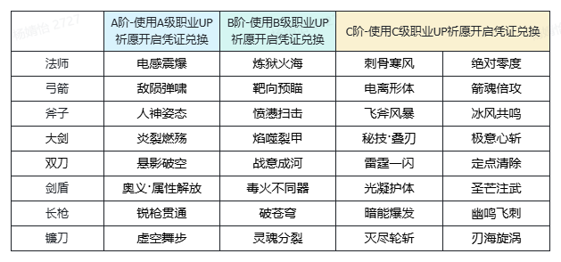 使用职业祈愿开启凭证可兑换各职业限时up祈愿(三期),特定垓伊斯之力出率上升!
