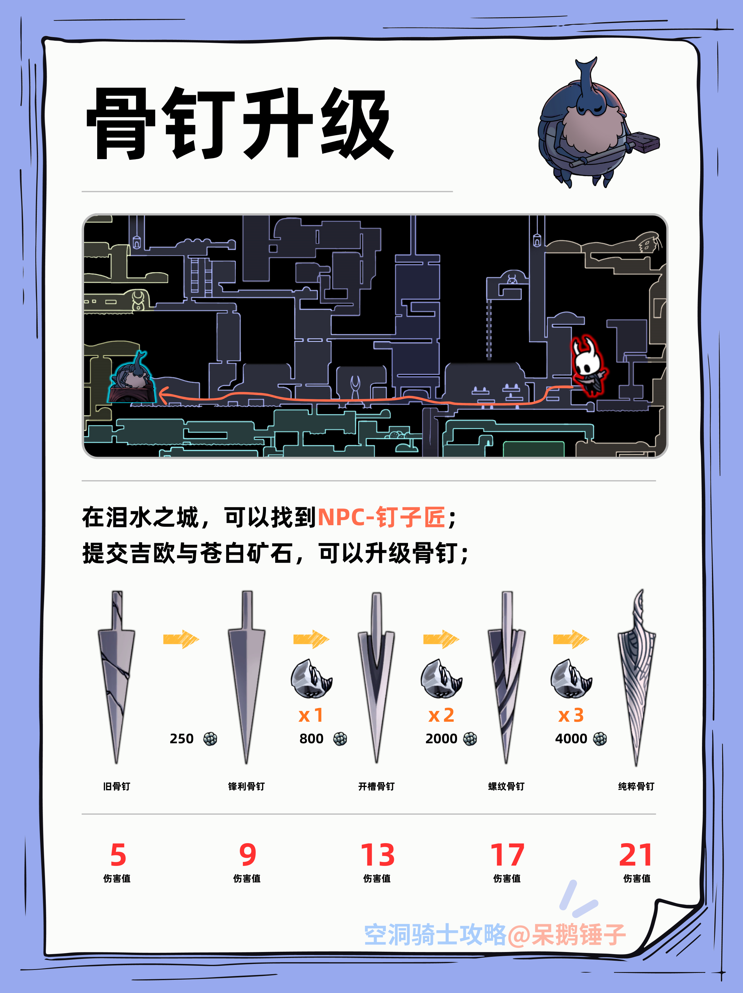 【空洞骑士】6个苍白矿石、骨钉升级攻略