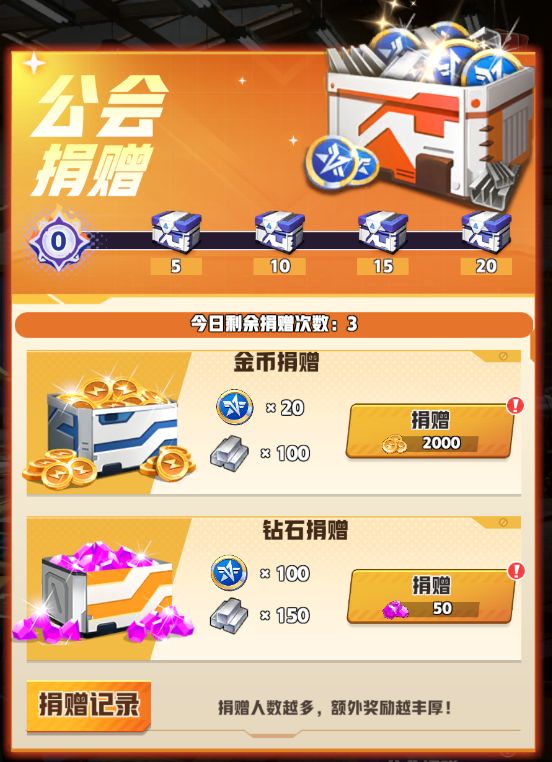 公会捐赠分为【金币捐赠】与【钻石捐赠】两种,钻石捐赠可以更快提升公会等级,获得更多公会币。加上公会商店里有大量金币、强化素材可兑换,手头有富余钻石的指挥官可以考虑选择钻石捐赠。
