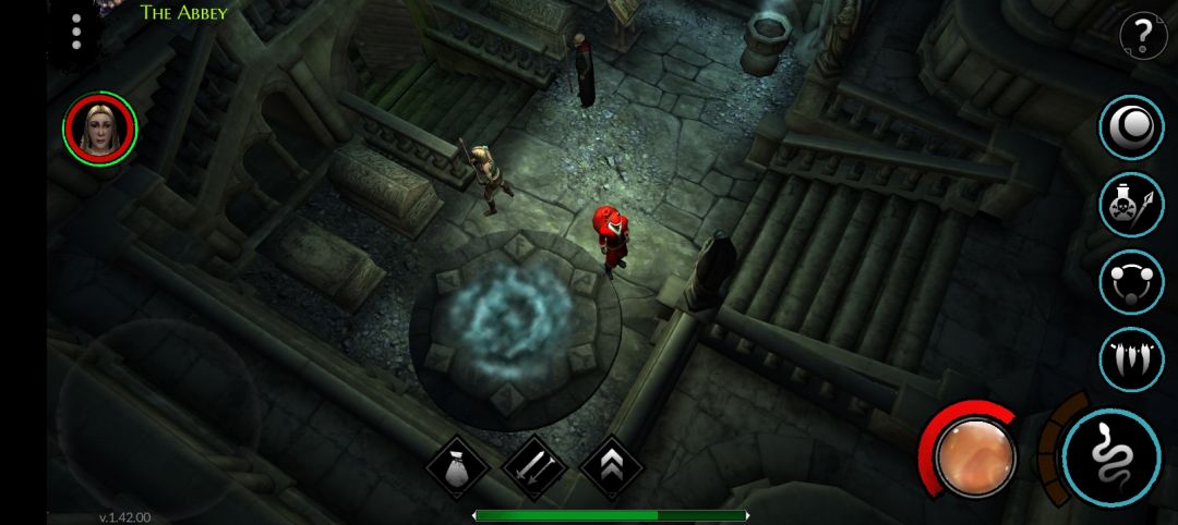 副本中引怪神殿,点紫色传送门,点漩涡,回去也是点漩涡,紫色传送门有重置时间,不到点不了,回去可以卖装备和修理装备,这个副本不给经验只给装备可以变卖游戏币,有的技能黑了就不能用了,我的召唤骷髅法师和战士都黑了,只能用瘟疫毒蛇+吸血鬼之牙+连锁闪电+剧毒箭+盾牌,第3和第4是装备带的技能,佣兵死了也可以用紫色传送门再花钱召唤回来