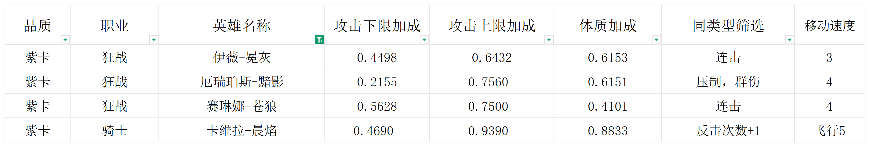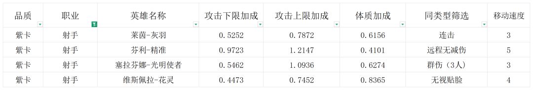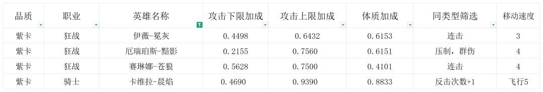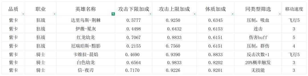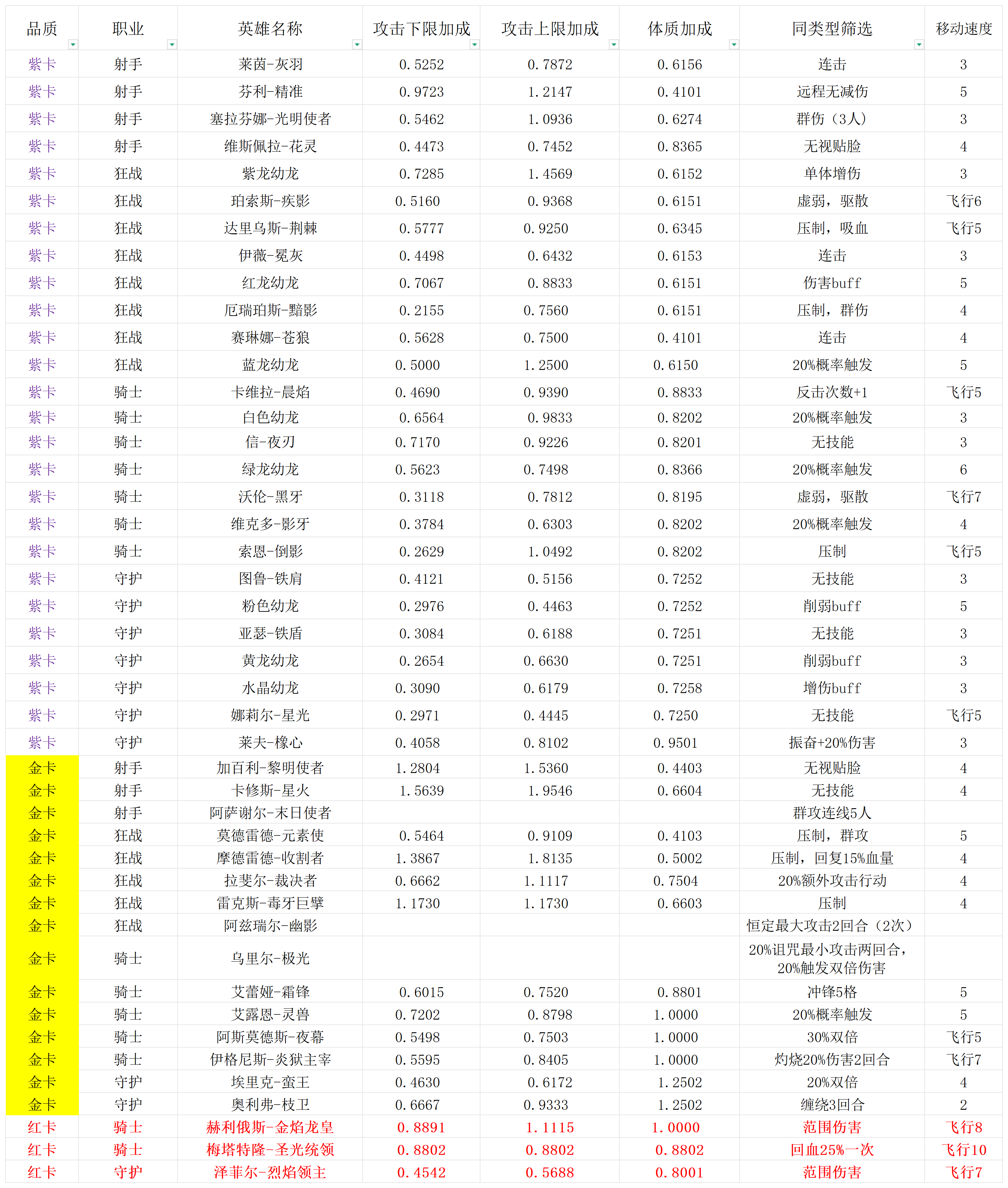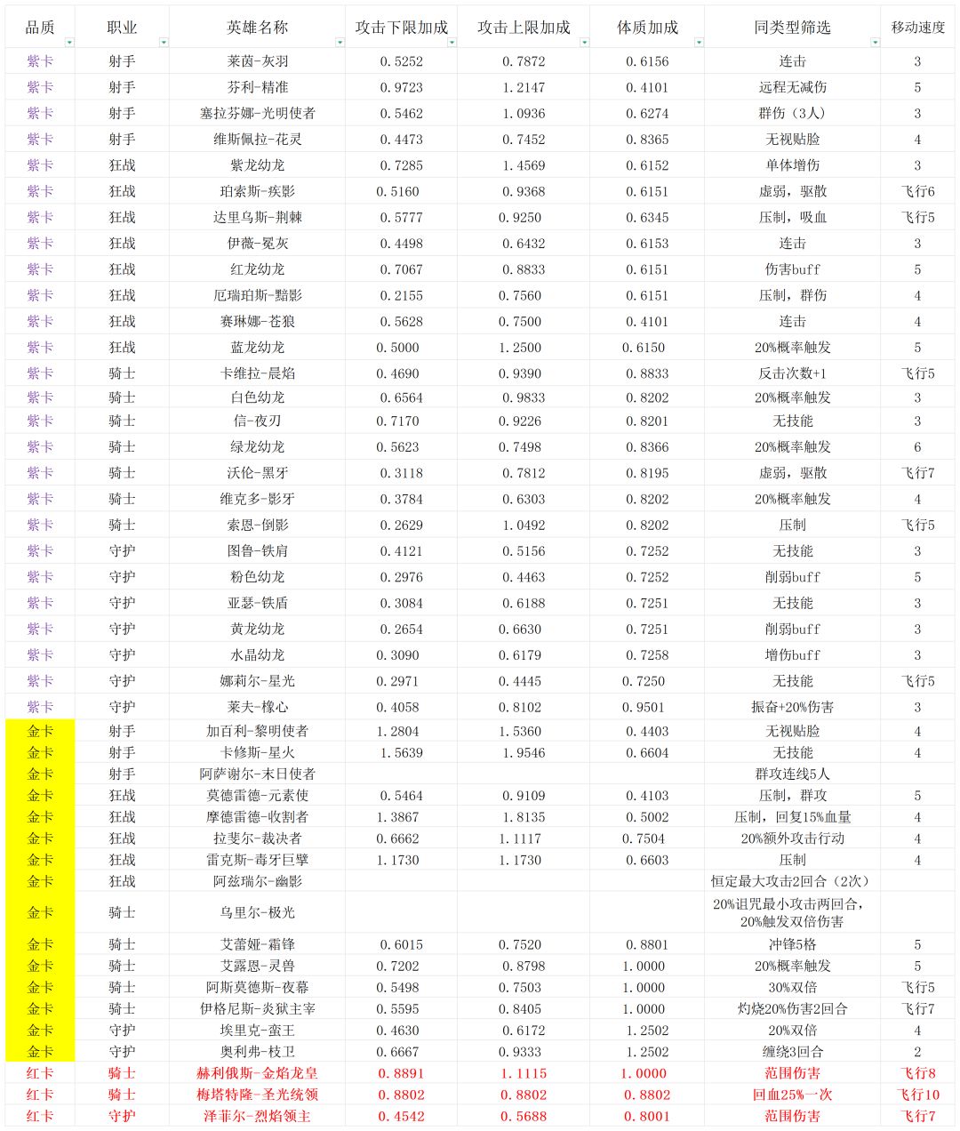 这是目前现有统计到的英雄数据,大家在搭配阵容的时候可以作为一个参考来使用