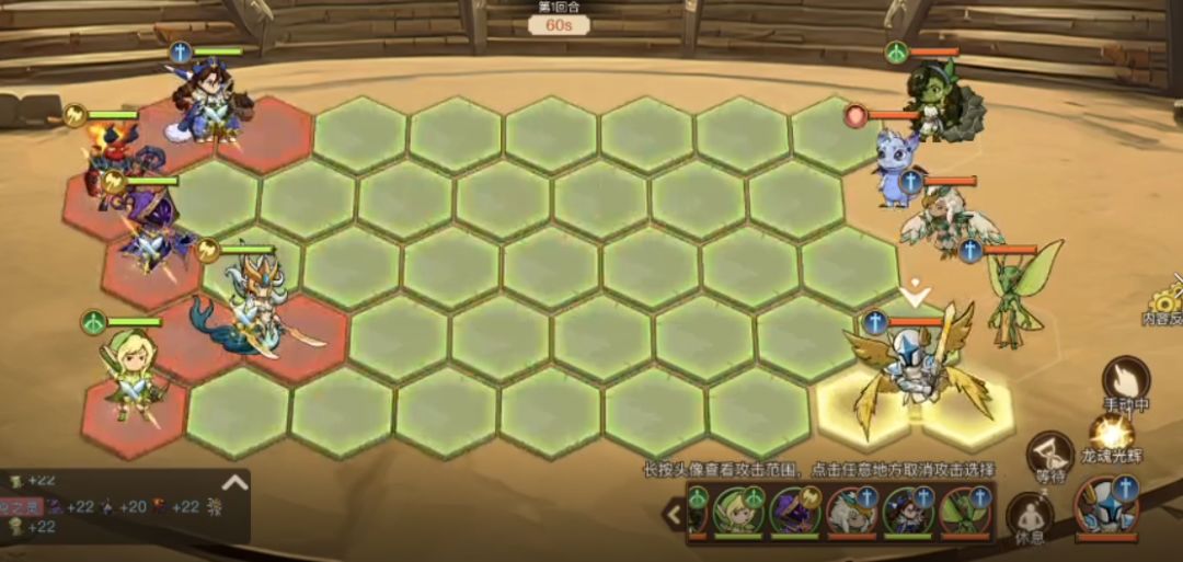 射手放在1号位置,第一回合不攻击,走在中段位置进行一个占位,这样左右两方都能全额输出,利用生命强制换血扩大威胁,其他万金油英雄集火掉点发挥长处,集火掉点,缺点很明显就是对面不搭理花灵,或者派个肉贴脸,先集火你的高输出脆皮英雄