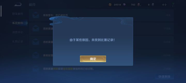 最后一把有事情就直接退了,打的匹配,和招募的队友玩的,想着上线跟他解释一下,一打开战绩懵了,找邮箱看对局没了?