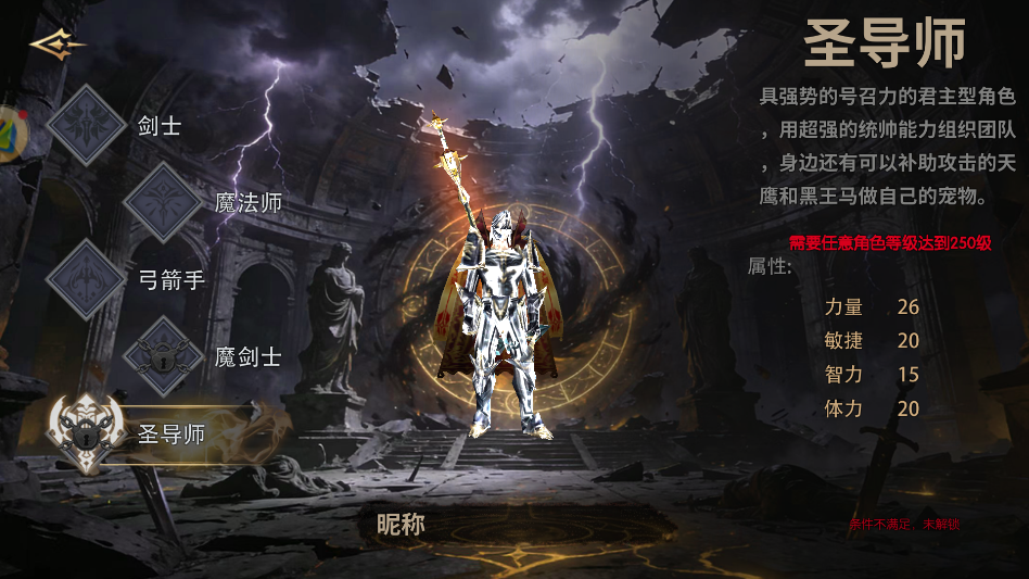 转职路线:圣导师→祭祀(Lv400)→大领主(Lv800)→重装领主(Lv1200)